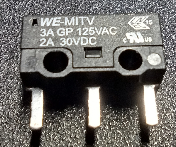 Notes on Microswitch PlacementThe plunger of the microswitch, which is the part that gets pressed so that the switch activates, must be oriented as shown in the following image.